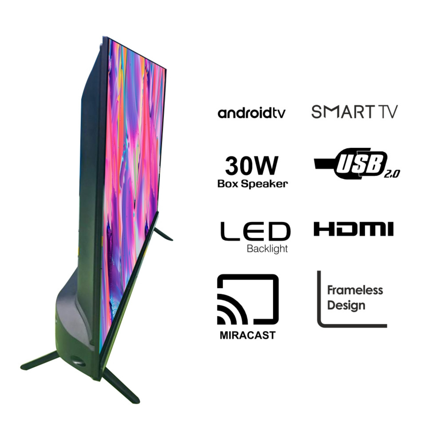 32 Inch Smart QLED EcoSmart LED TV (NB32SQ01) – Android TV, 30W Speakers, Frameless Design, HDMI & USB